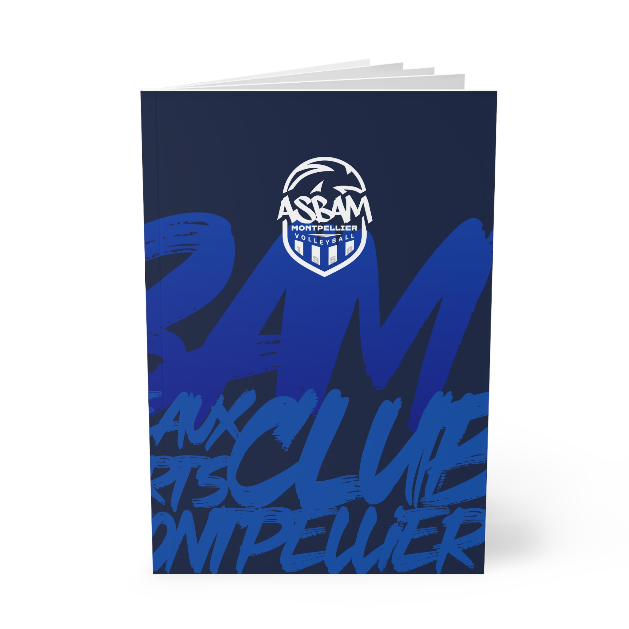 Alliez organisation et passion avec le Carnet ASBAM Montpellier. Doté d’une couverture souple au fini mat laminé, ce carnet arbore un design dynamique aux couleurs bleu électrique et marine. Avec son lettrage style graffiti et son emblème officiel, il dégage une énergie athlétique, parfaite pour vous accompagner du bureau jusqu’au vestiaire.